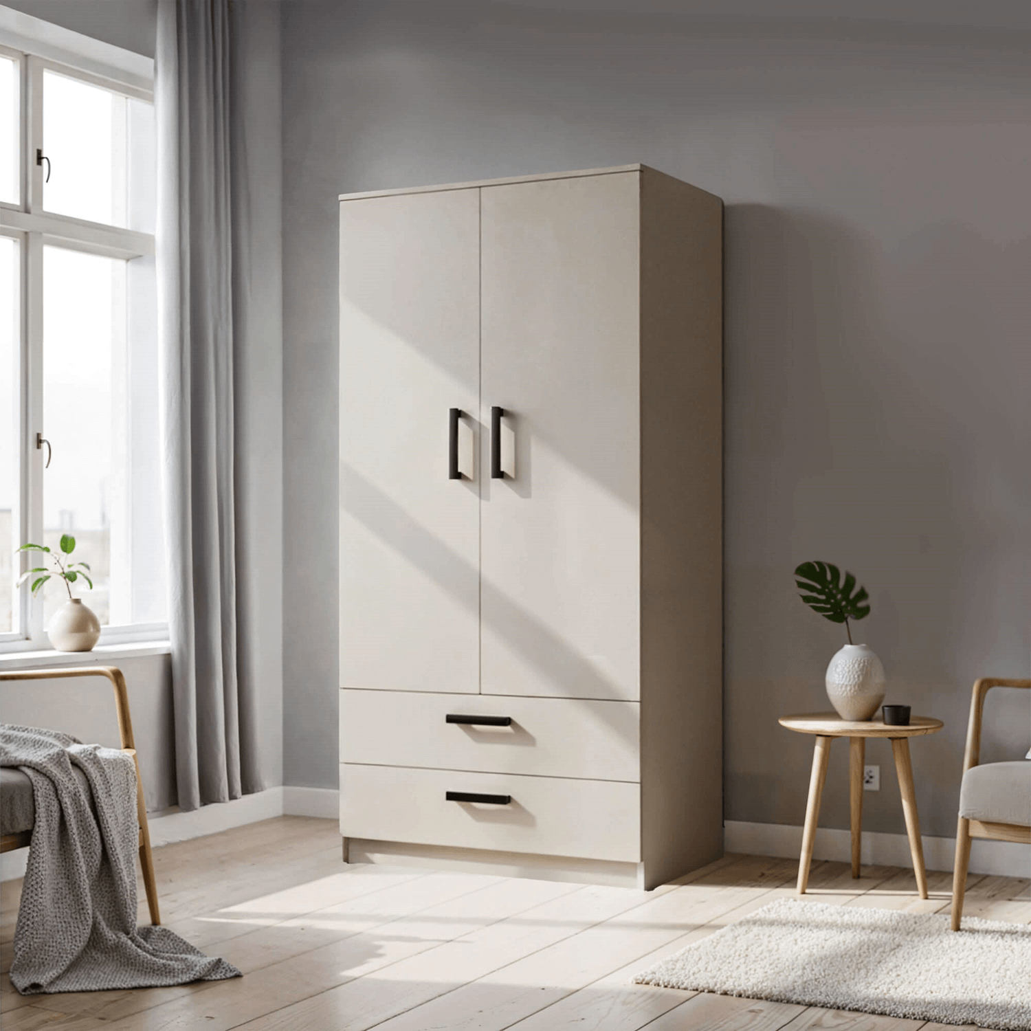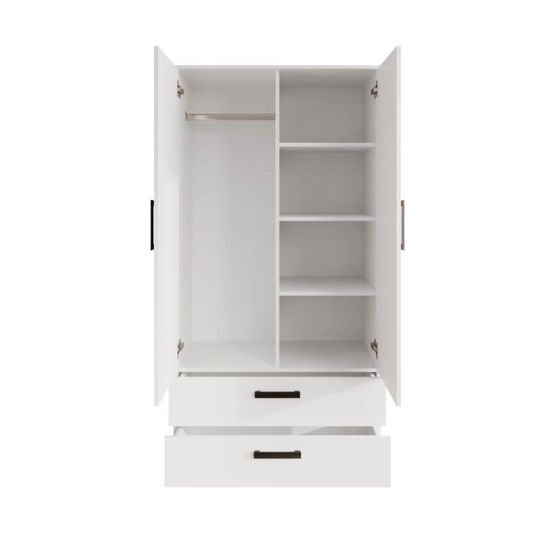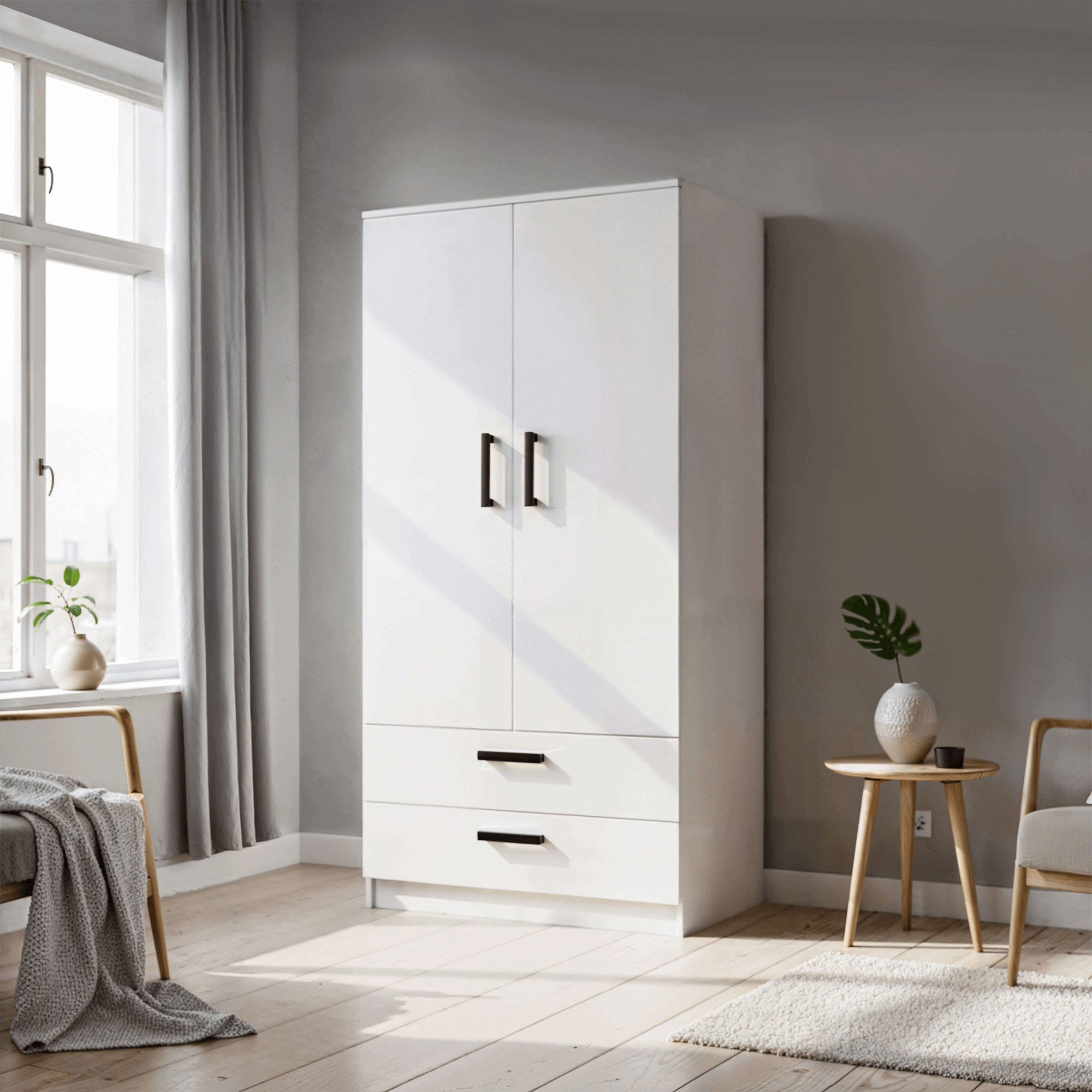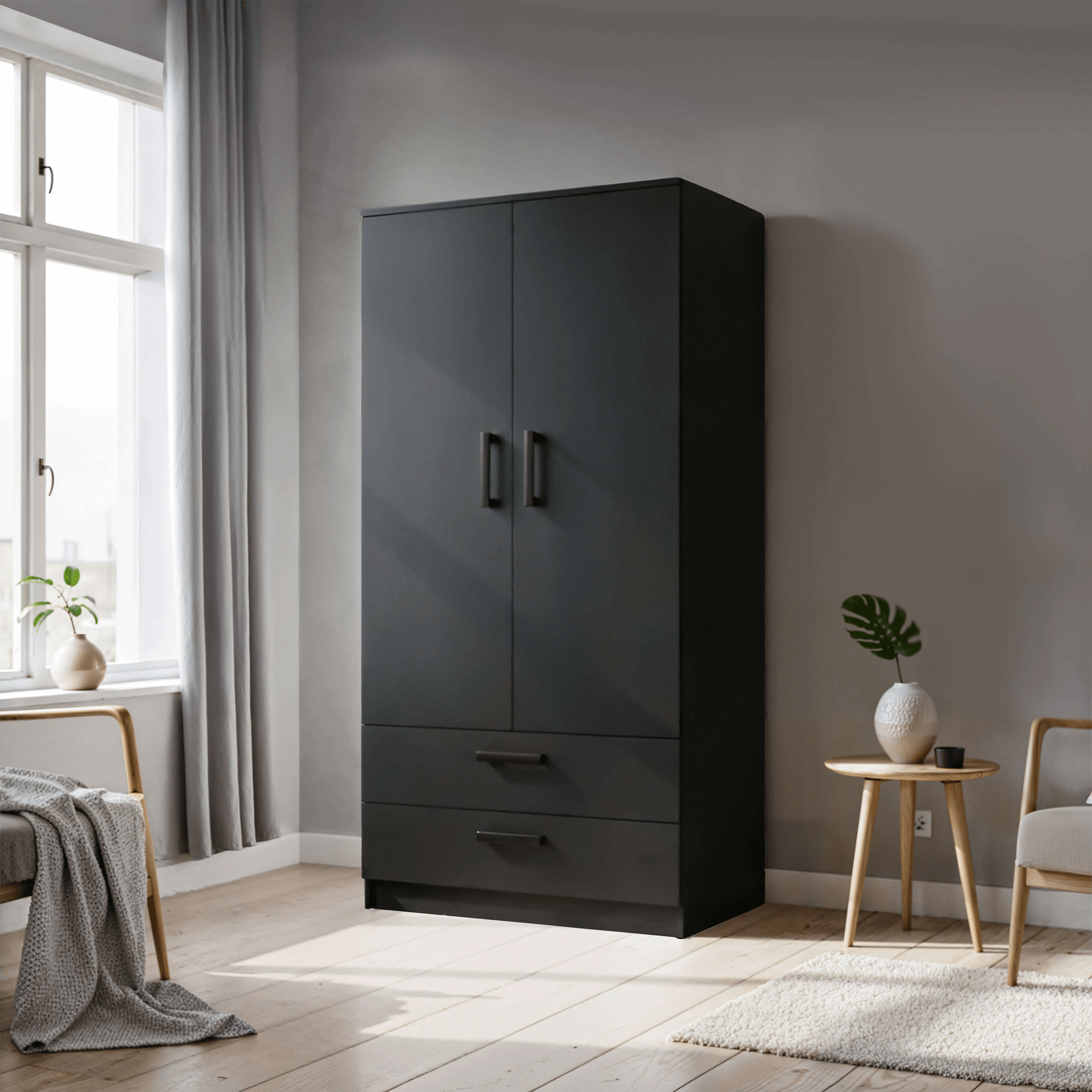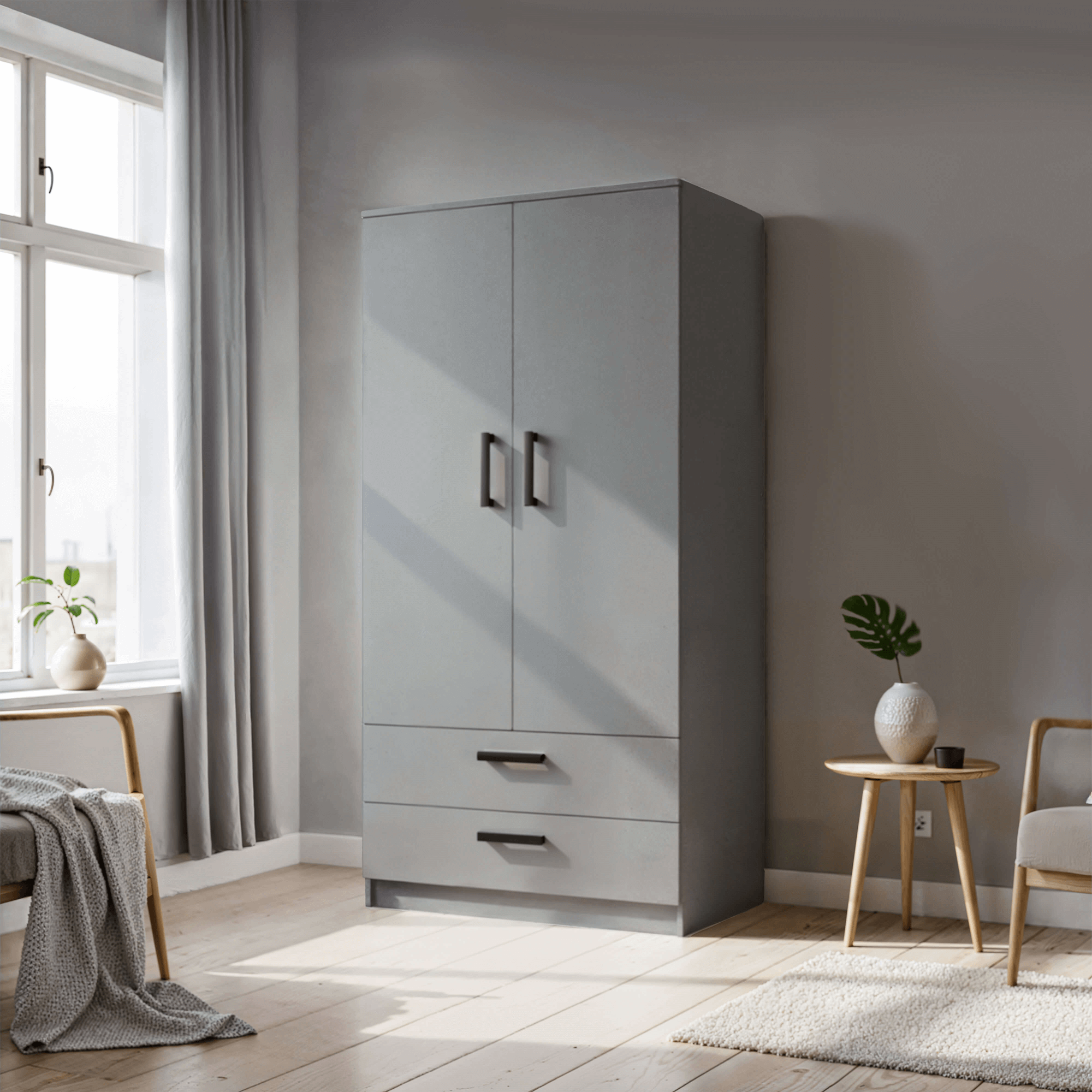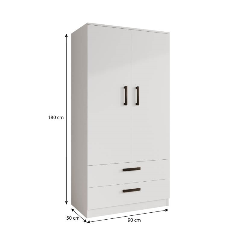 Szafa MOOD 2 to nowoczesny, praktyczny mebel, który idealnie sprawdzi się w sypialni, garderobie, pokoju młodzieżowym czy przedpokoju. Dwudrzwiowa konstrukcja połączona z dwiema pojemnymi szufladami zapewnia maksymalną funkcjonalność i wygodne przechowywanie wszystkich elementów garderoby.