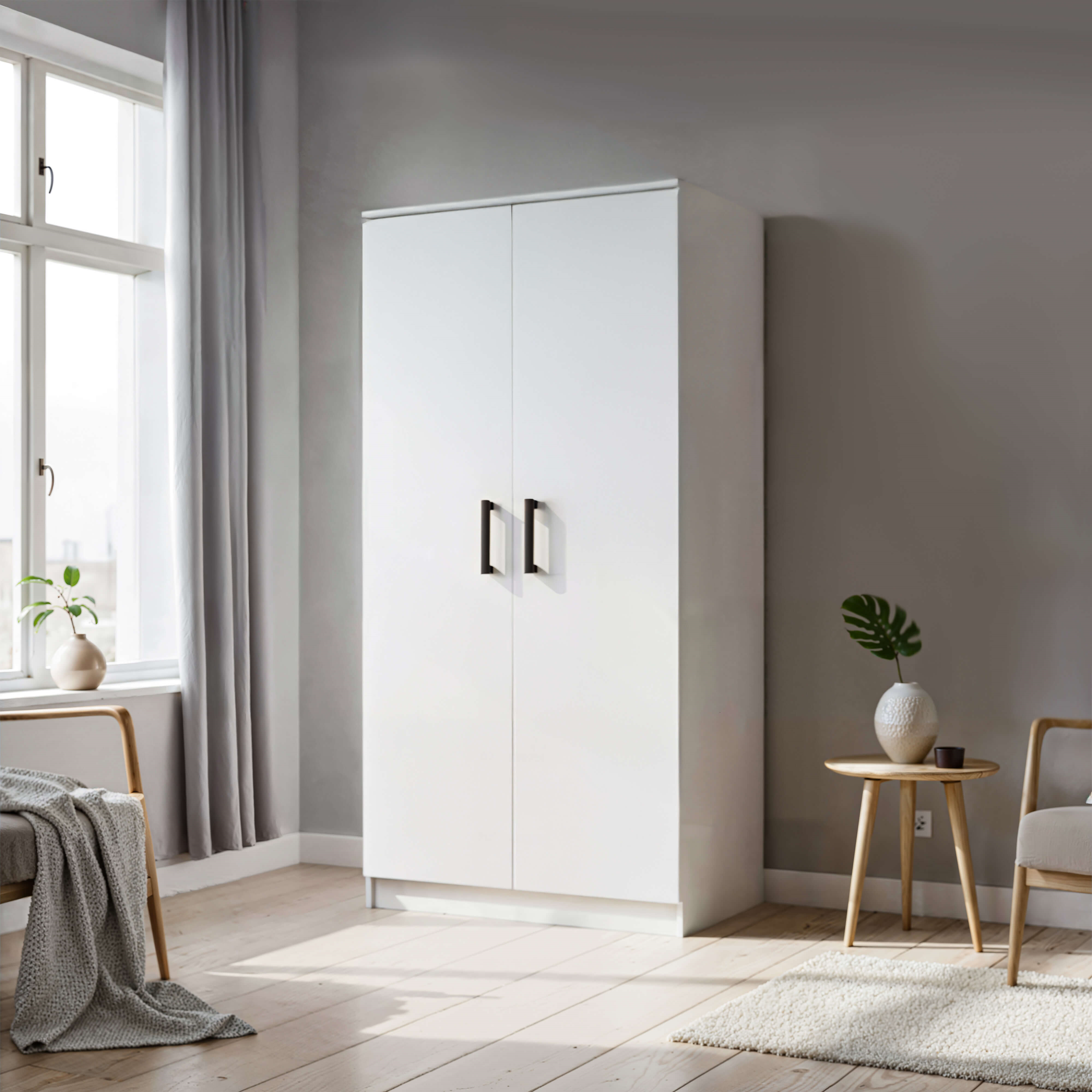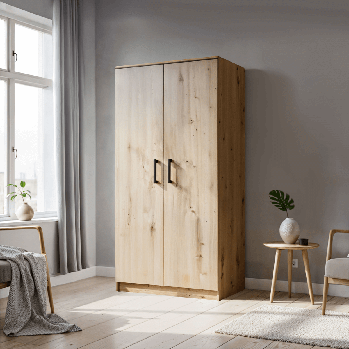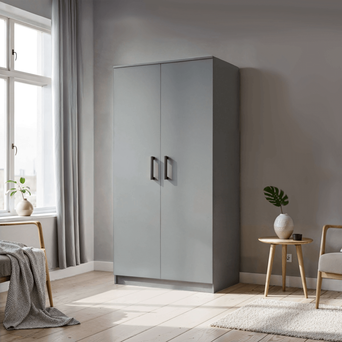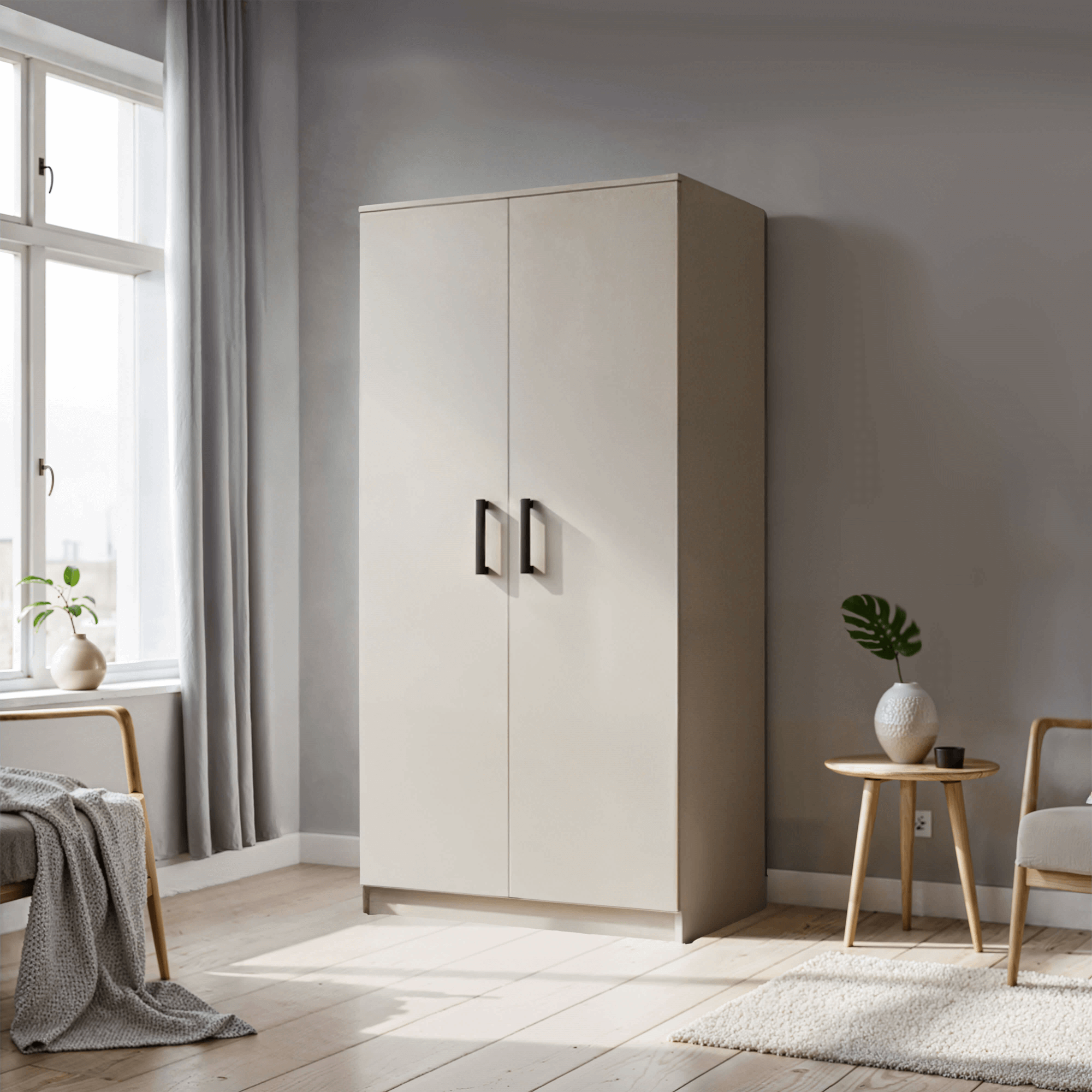 Szafa MOOD to połączenie minimalistycznego designu, funkcjonalności i eleganckiej formy. Dwudrzwiowa konstrukcja sprawia, że mebel jest niezwykle wygodny w codziennym użytkowaniu, a jego wnętrze zostało zaprojektowane tak, aby maksymalnie ułatwić organizację ubrań i dodatków.