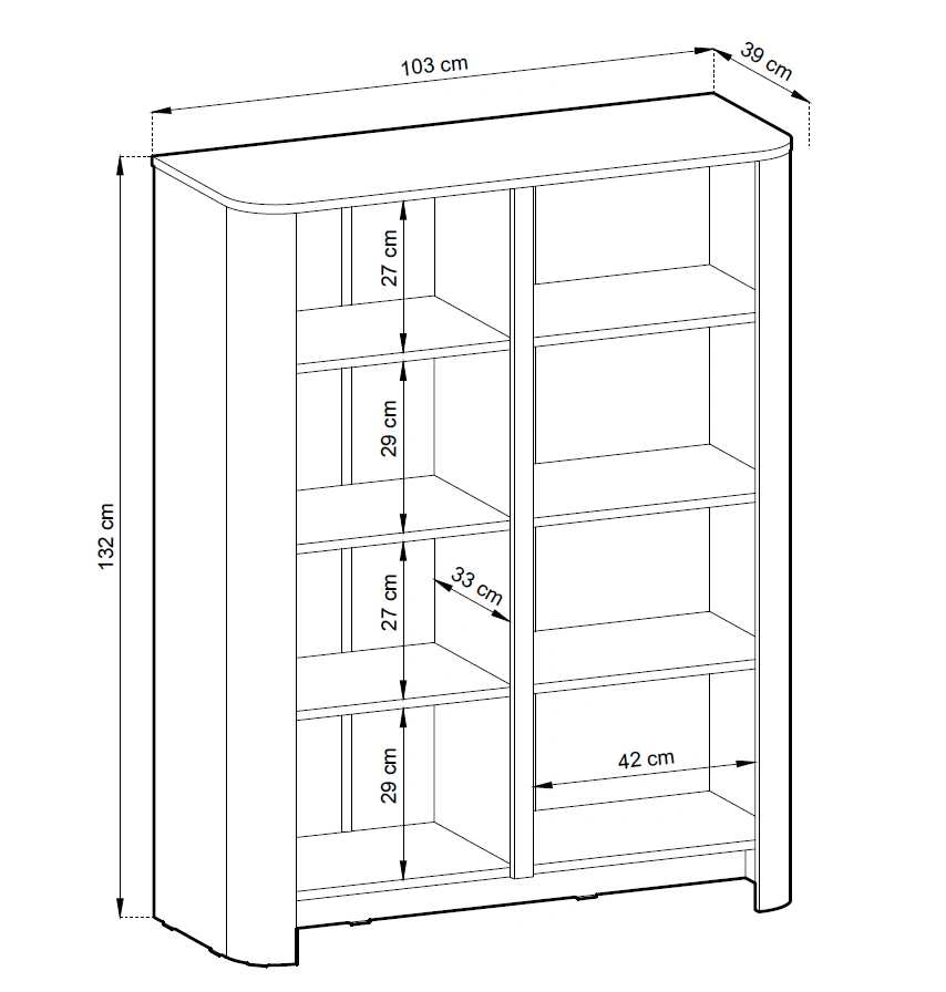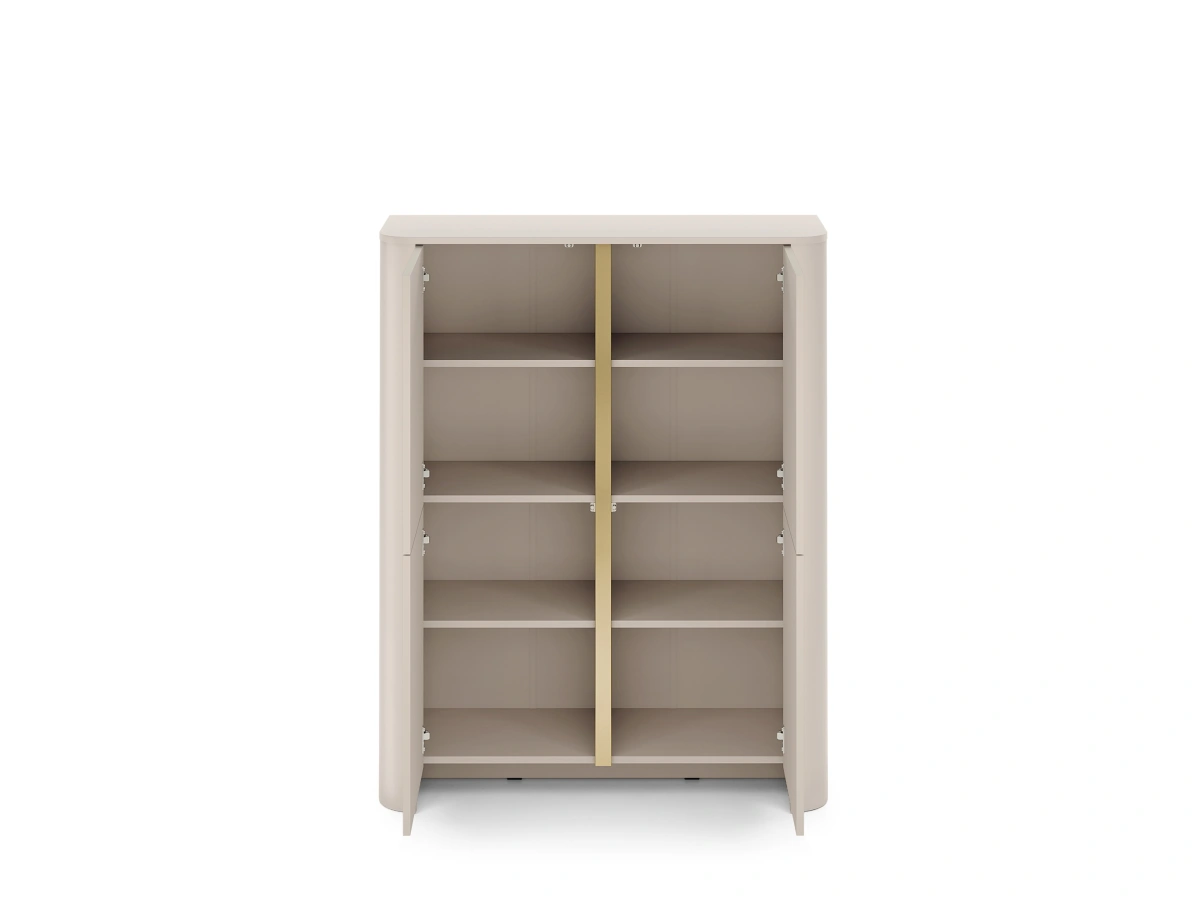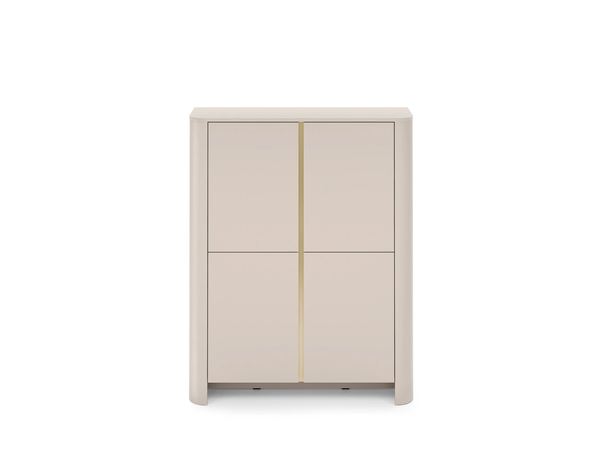 SOFT EDGE K103 to elegancka, wysmuklona komoda łącząca geometryczną formę z miękko zaoblonymi krawędziami. Dzięki układowi czterech szafek z półkami łatwo uporządkujesz zastawę, tekstylia, dokumenty i dodatki. Bezuchwytowy system podkreśla minimalistyczny charakter frontów, a jakościowe okucia Häfele gwarantują płynną, długotrwałą pracę. Neutralny kolor kaszmir lub naturalny dąb Vicenza pozwalają wkomponować mebel w nowoczesne aranżacje salonu, jadalni czy gabinetu.