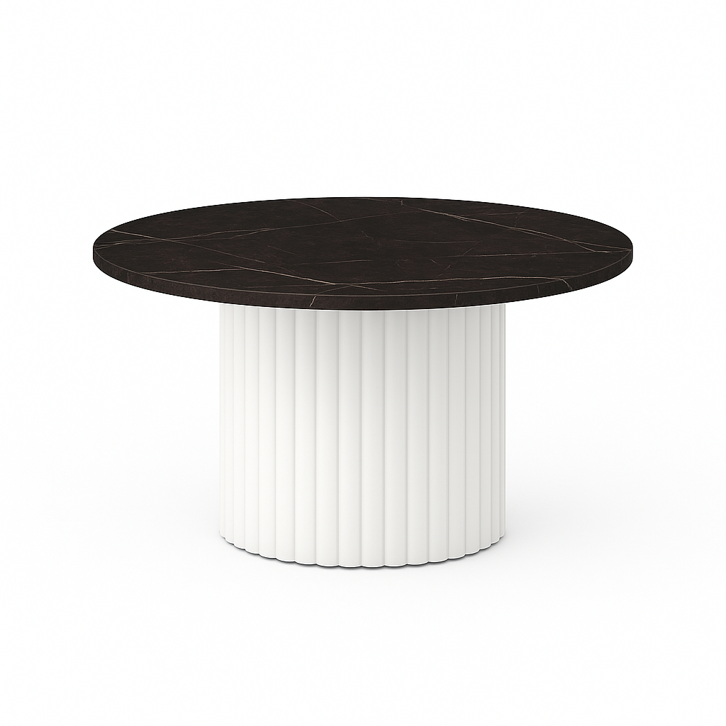 Dostępny w rozmiarach średnicy – 58, 75 i 90 cm – pozwala idealnie dopasować rozmiar stolika do przestrzeni, niezależnie czy potrzebujesz go do salonu, sypialni, na balkon czy do strefy relaksu w apartamencie typu studio. Blat z płyty laminowanej o grubości 1,8 cm jest trwały, łatwy w czyszczeniu i estetyczny, a malowana proszkowo podstawa w kolorze kaszmiru nadaje mu elegancki charakter.